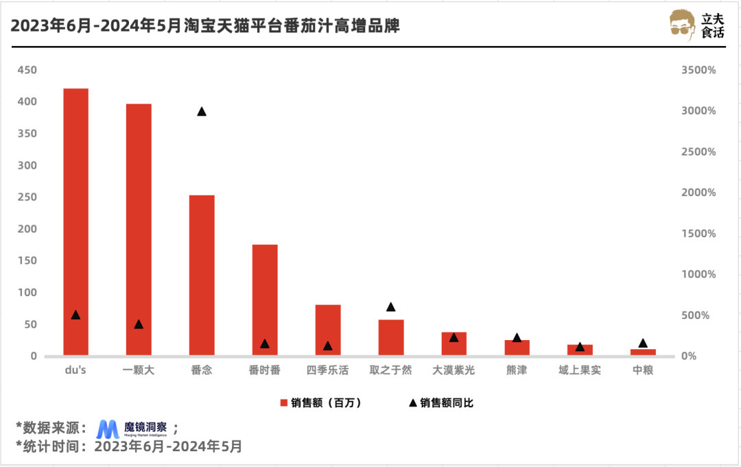 2023年6月-2024年5月淘天番茄汁高增品牌