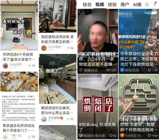 ◎小紅書(shū)和抖音上,關(guān)于烘焙倒閉的帖子比比皆是