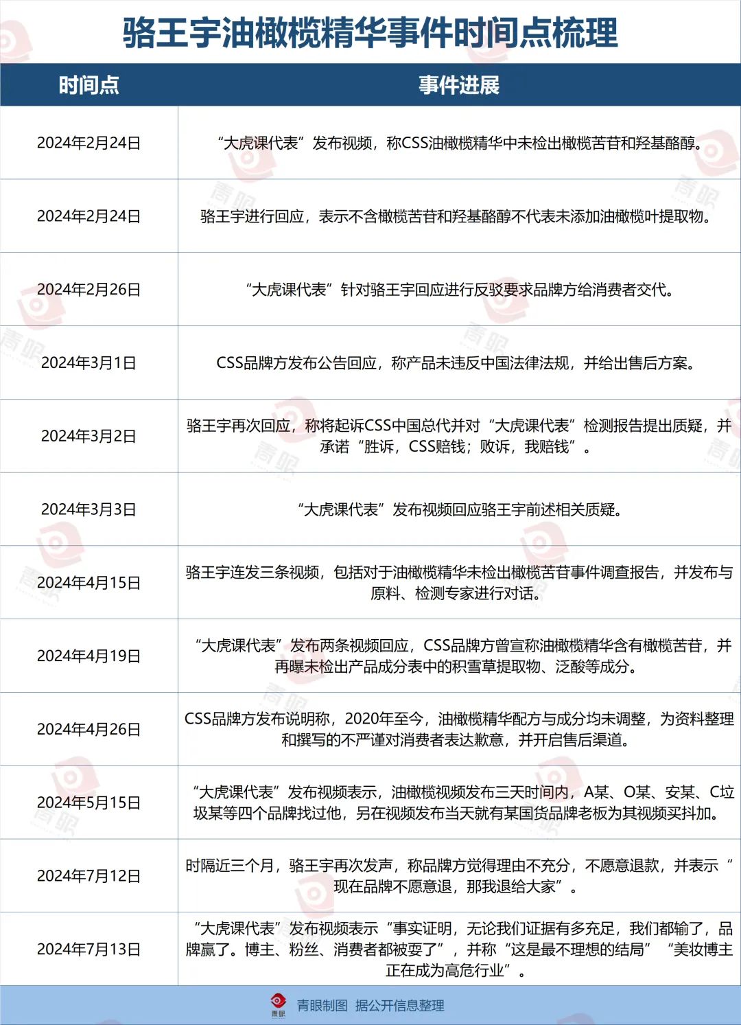 在此之后,駱王宇先后在2至4月發(fā)布多條視頻,予以回應(yīng),稱不含橄欖苦苷和羥基酪醇不代表未添加油橄欖葉提取物,并表示將起訴CSS中國(guó)區(qū)總代。隨后,“大虎課代表”則再曝未檢出CSS油橄欖精華產(chǎn)品成分表中的積雪草提取物、泛酸等成分。