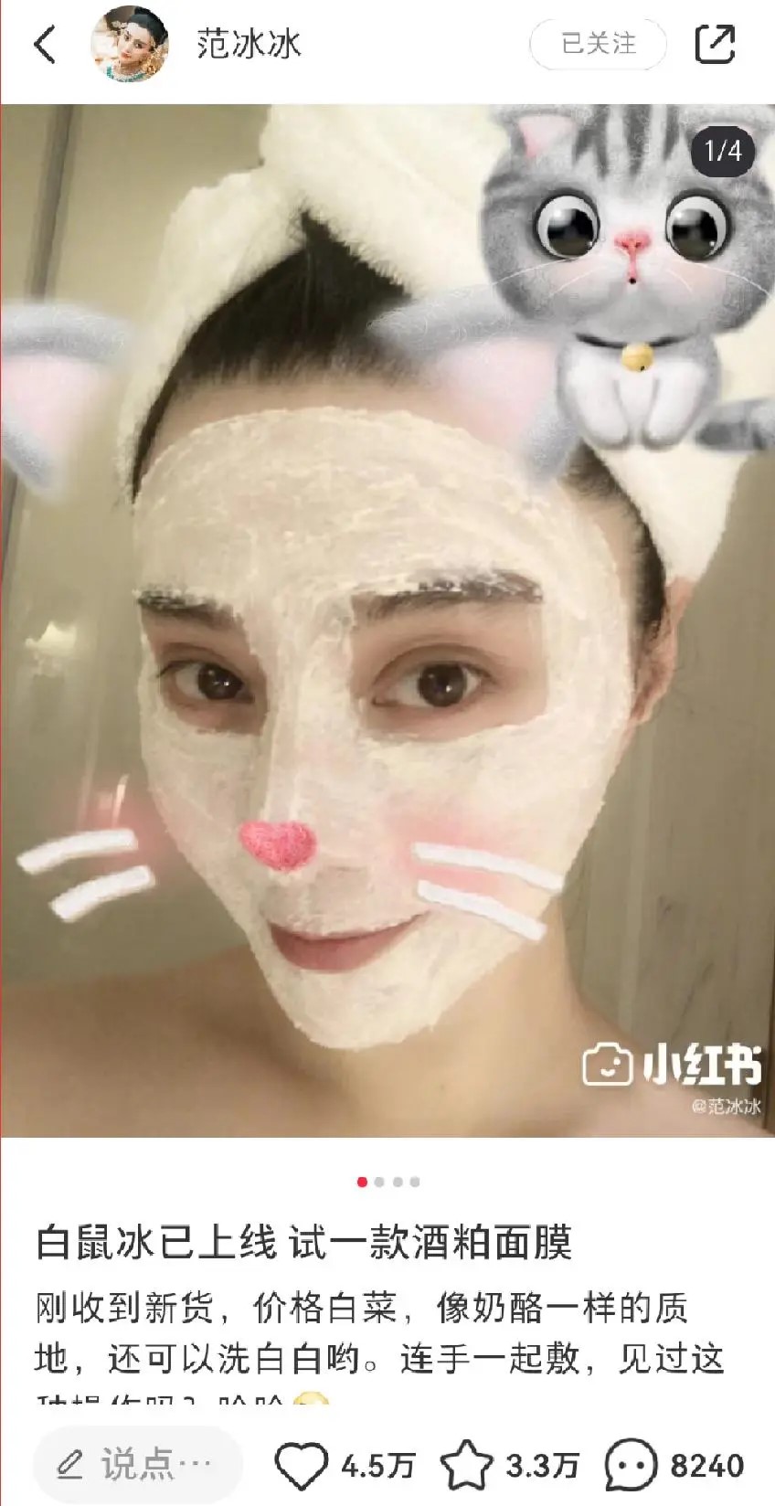 逃稅事件半年后,范冰冰就帶著FAN BEAUTY卷土重來,一邊“自降身價”進入網(wǎng)紅圈做美妝博主,下場給自己的品牌打廣告,一邊將品牌品類從美容儀轉(zhuǎn)移到了面膜上。