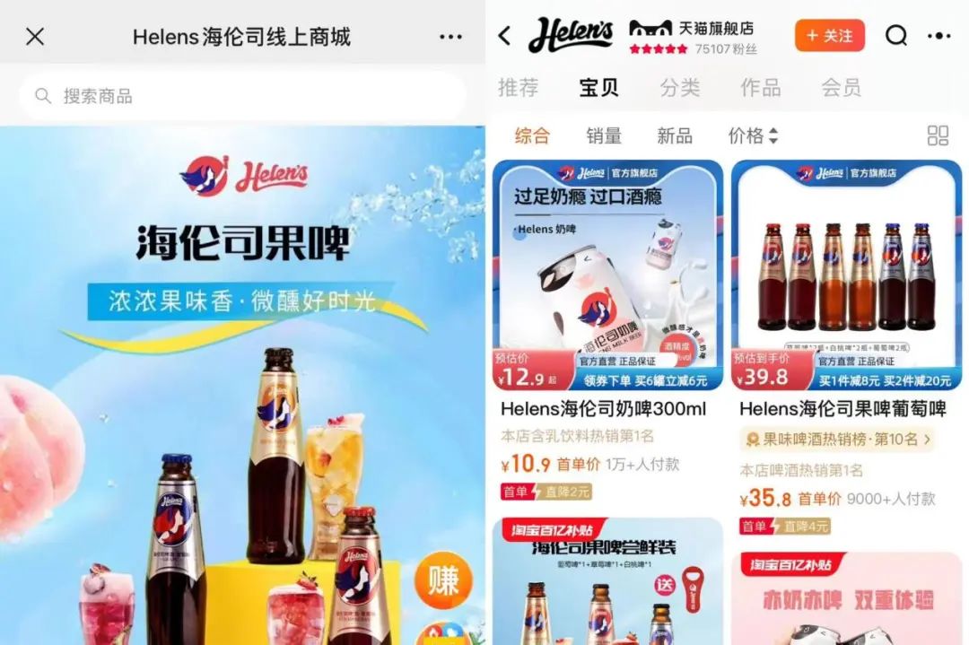 官網(wǎng)顯示,海倫司已開放產(chǎn)品經(jīng)銷商申請,便利店、KTV等渠道均可采購并銷售其品牌產(chǎn)品。同時,海倫司的線上商城和天貓旗艦店也已上架多款自有品牌產(chǎn)品。