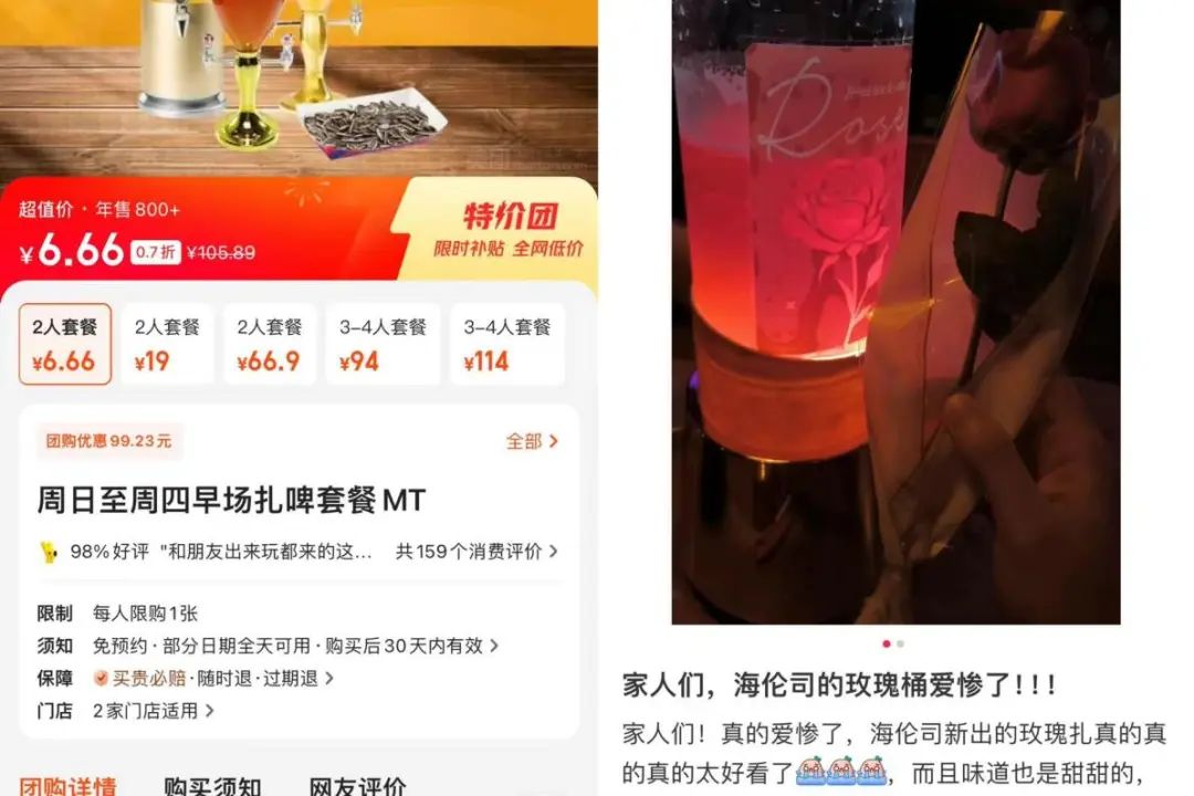 一是繼續(xù)擴(kuò)大“質(zhì)價比”的優(yōu)勢,壓低原材料采購價格,讓利消費(fèi)者,非節(jié)假日去海倫司喝酒,6.66元就可享受3000ml的扎。◤9元時代進(jìn)入6元時代)。二是增強(qiáng)新產(chǎn)品研發(fā),推出各種大容量桶裝酒,精準(zhǔn)對接多人聚會與社交場景需求。大桶酒具有成本優(yōu)勢,毛利更高,也有利于門店營收。