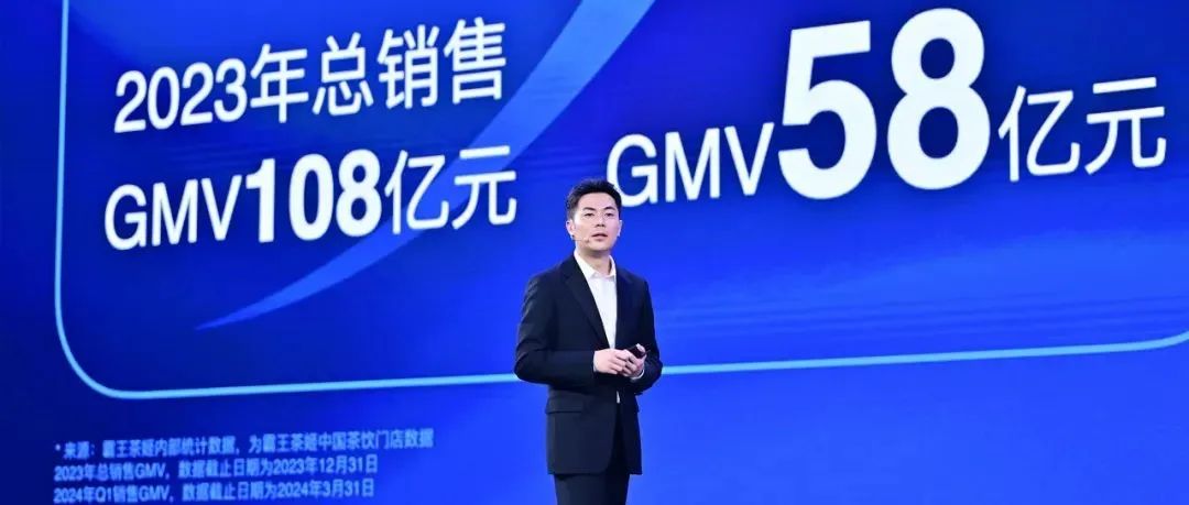 伴隨著門店數(shù)量增長,霸王茶姬的業(yè)績也飛速攀升。2023年,霸王茶姬GMV達108億元,同比增長734%;2024年Q1 GMV達58億元,已達上年一半左右。霸王茶姬內(nèi)部預(yù)計,2024年公司營收將超200億,翻倍增長。