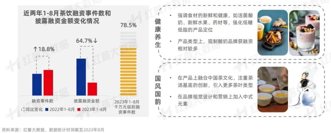 新茶飲企業(yè)的經(jīng)營質(zhì)量普遍不佳,資本自然會變得愈發(fā)謹慎。紅餐大數(shù)據(jù)顯示,2022年,茶飲品牌融資規(guī)模為45億元,相較上年的83億元近乎腰斬。2023年前八個月,茶飲品牌披露融資金額繼續(xù)同比下跌64.7% 。