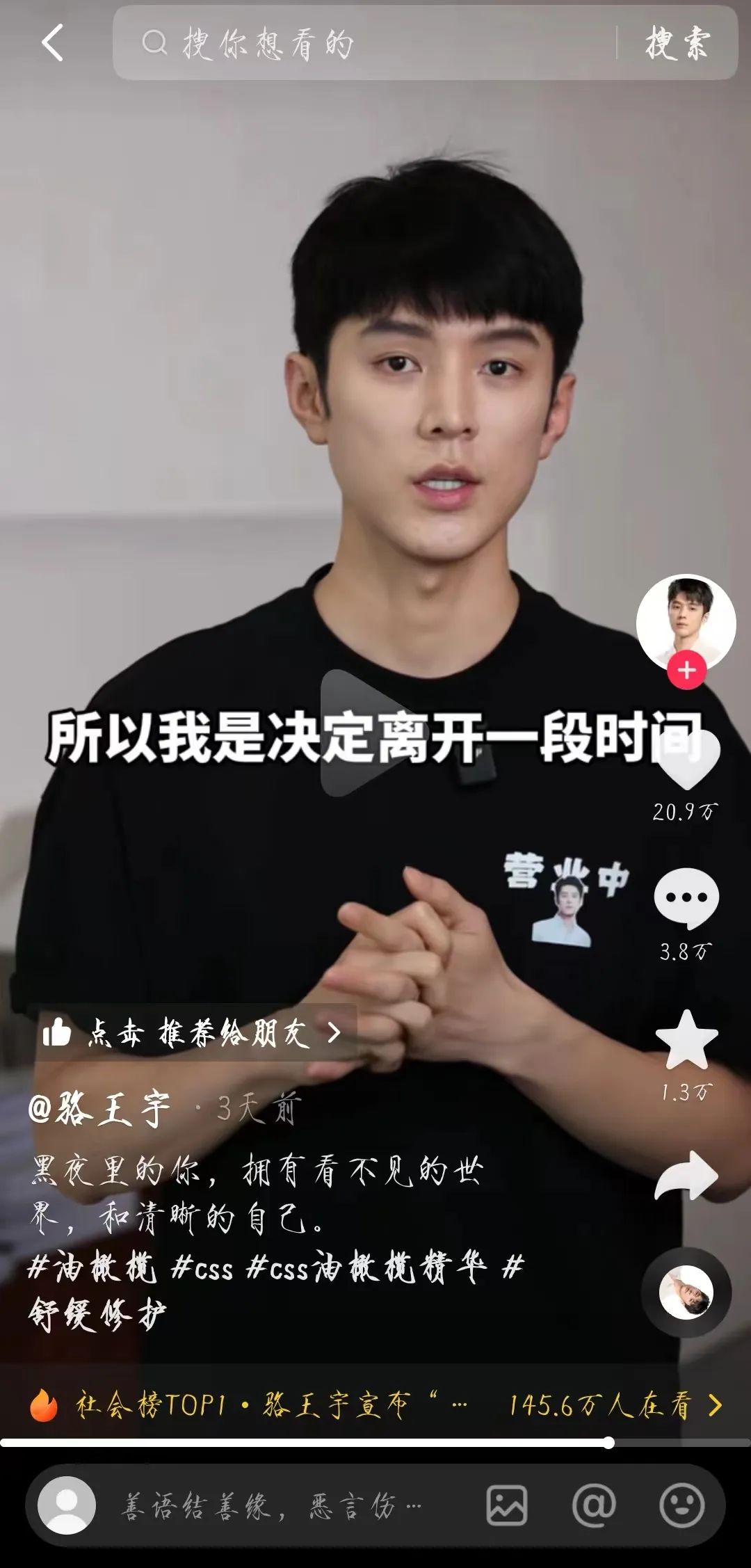 全網(wǎng)粉絲量破千萬抖音美妝一哥駱王宇要退了。