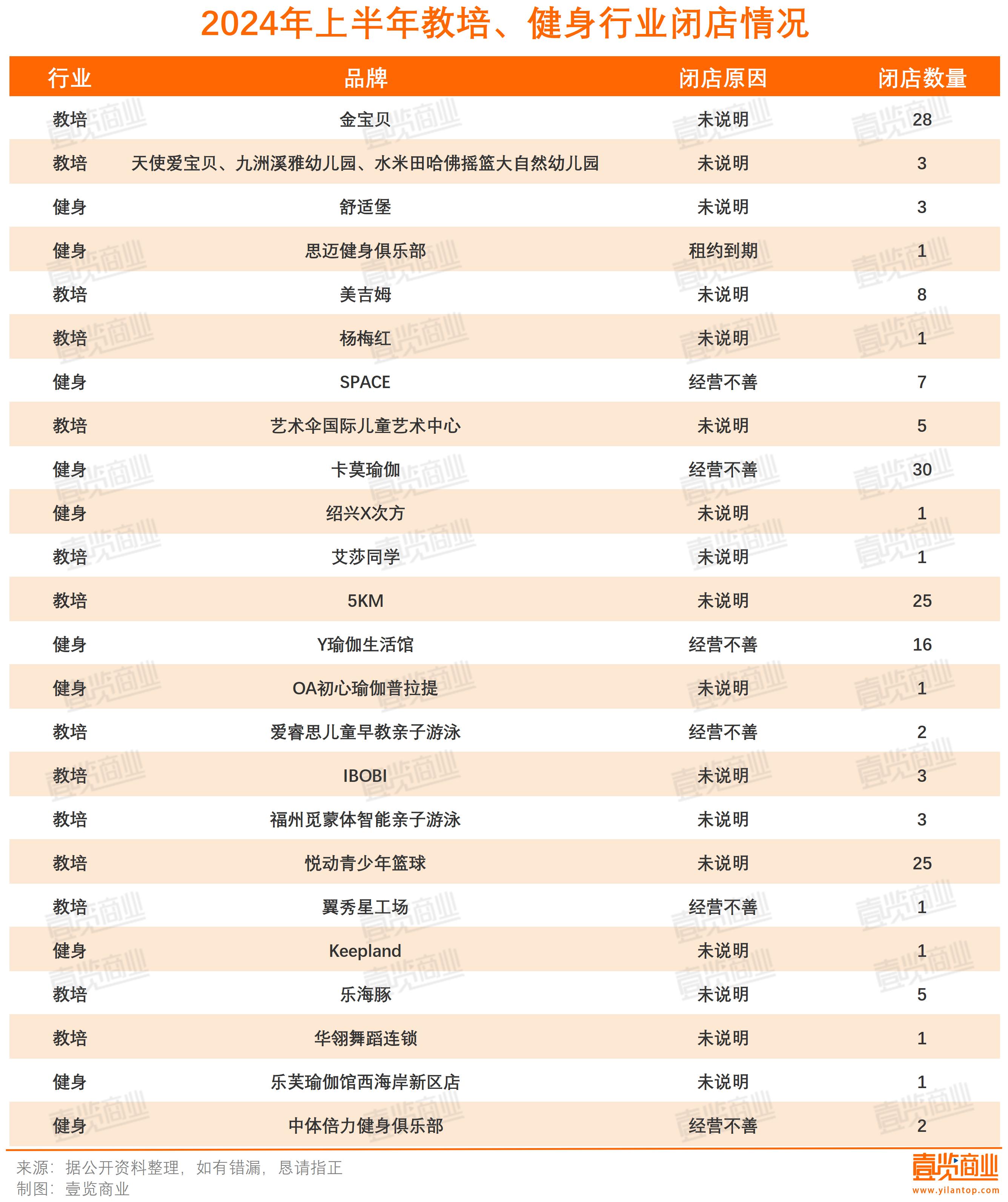 上半年,教培與健身行業(yè)跑路風(fēng)頻現(xiàn),多家知名機構(gòu)相繼宣布閉店。據(jù)壹覽商業(yè)不完全統(tǒng)計,美吉姆、金寶貝、卡莫瑜伽、5KM等品牌門店大規(guī)模停業(yè),超150家門店倒閉,涉及金額超千萬。