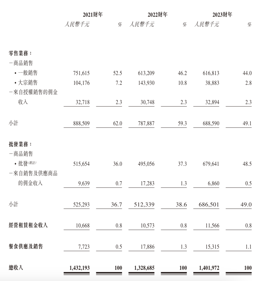整體來看,宏信超市主要業(yè)務(wù)為超市及便利店以及兩家商城的零售業(yè)務(wù),批發(fā)業(yè)務(wù)則是向經(jīng)銷商銷售糧油食品,也向海外客戶銷售服裝及木制品等。此外,宏信還有租賃業(yè)務(wù),將零售店鋪及商城的部分店面租賃給其它餐廳、酒店及藥房等零售商,同時(shí)還向當(dāng)?shù)仄髽I(yè)、學(xué);蛘畽C(jī)構(gòu)配送餐食。