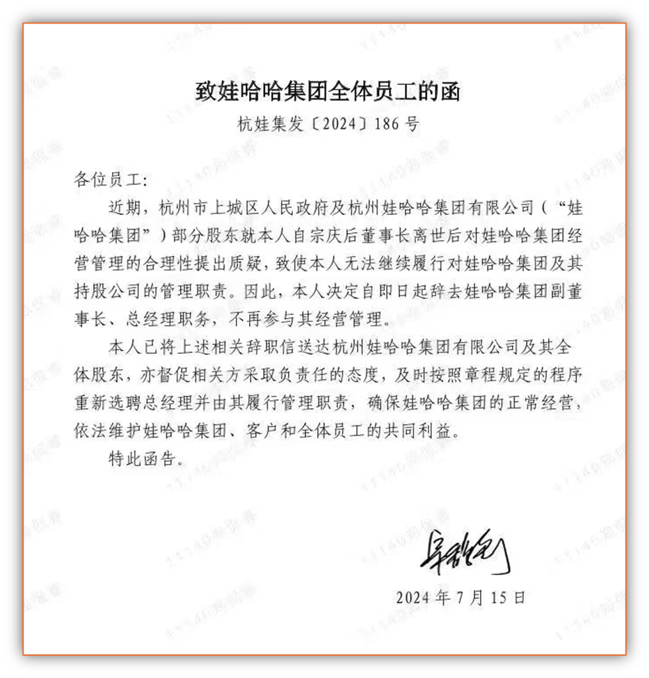 但如果這份函件所述為真,至少宗馥莉在此次“逼宮之戰(zhàn)”中,處于弱勢。這當(dāng)中有諸多玩味之處。