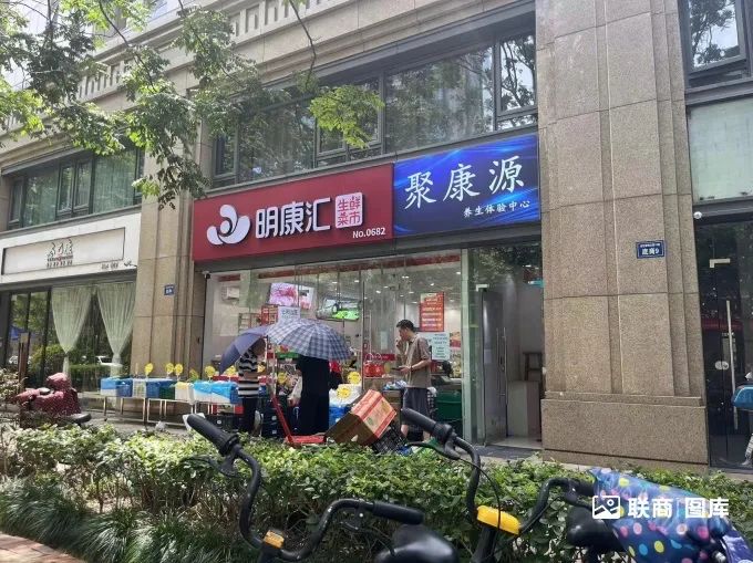 筆者大略統(tǒng)計了下,包括中通甄選在內(nèi),兩百多米的街道上有著至少5家生鮮超市,這其中既有明康匯生鮮菜市這樣的知名連鎖品牌,也有接地氣的夫妻老婆店。不止生鮮店,同一街道上,還遍布著水果店、便利店、社區(qū)小超市等。