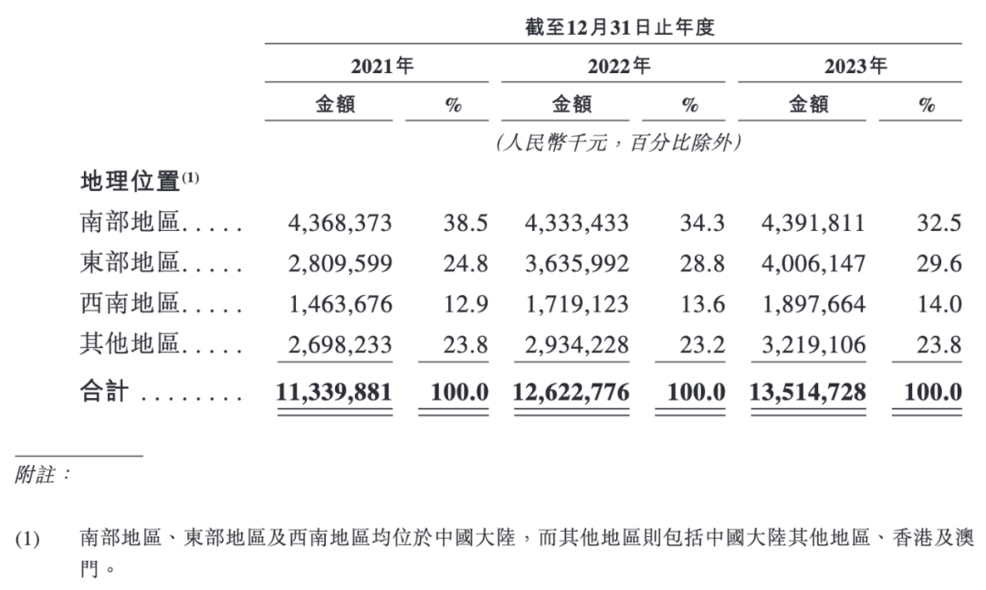 2023年,南部地區(qū)為華潤飲料貢獻了43.92億元的收入,占總收入的32.5%,在各大地區(qū)中占據(jù)第一位;東部地區(qū)以40.06億元的收入占比29.6%,居第二位;在西南地區(qū)華潤飲料也有18.98億元的收入,占總收入的14%。