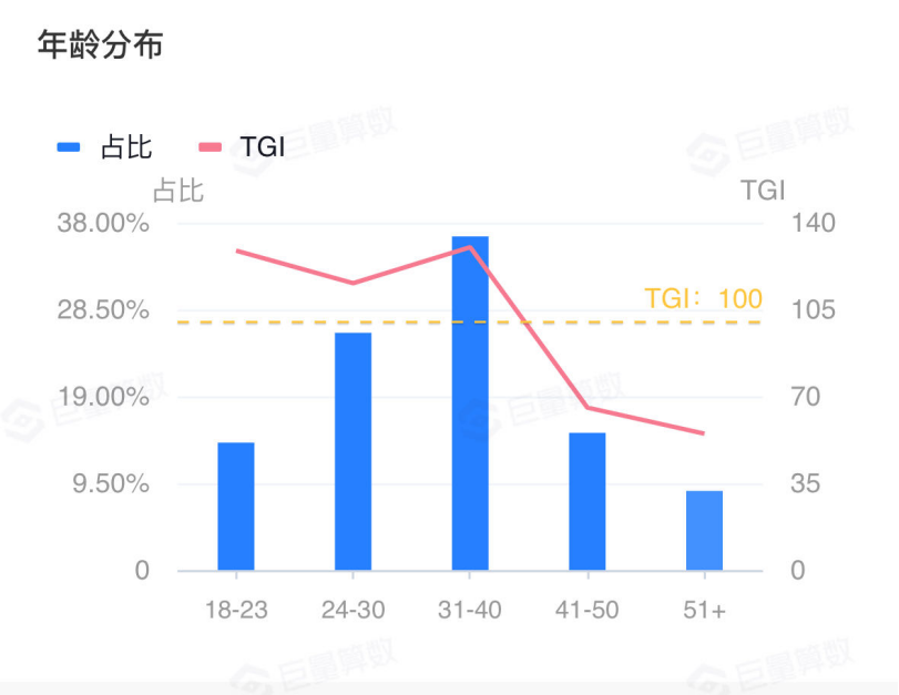 從巨量算數(shù)的關(guān)鍵詞搜索來(lái)看,蒼蠅館子的人群畫像里,30歲以下的人群占比接近4成。也意味著蒼蠅館子的關(guān)注人群逐漸出現(xiàn)了年輕化趨勢(shì)。
