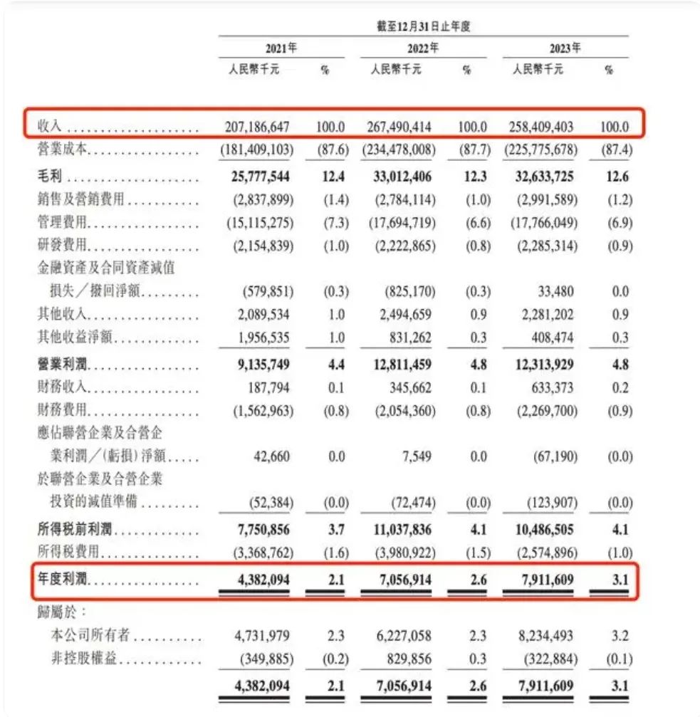 順豐在2021-2023年,控股毛利率分別為12.37%、12.49%、12.82%,銷(xiāo)售凈利率分別是1.89%、2.62%、3.06%。