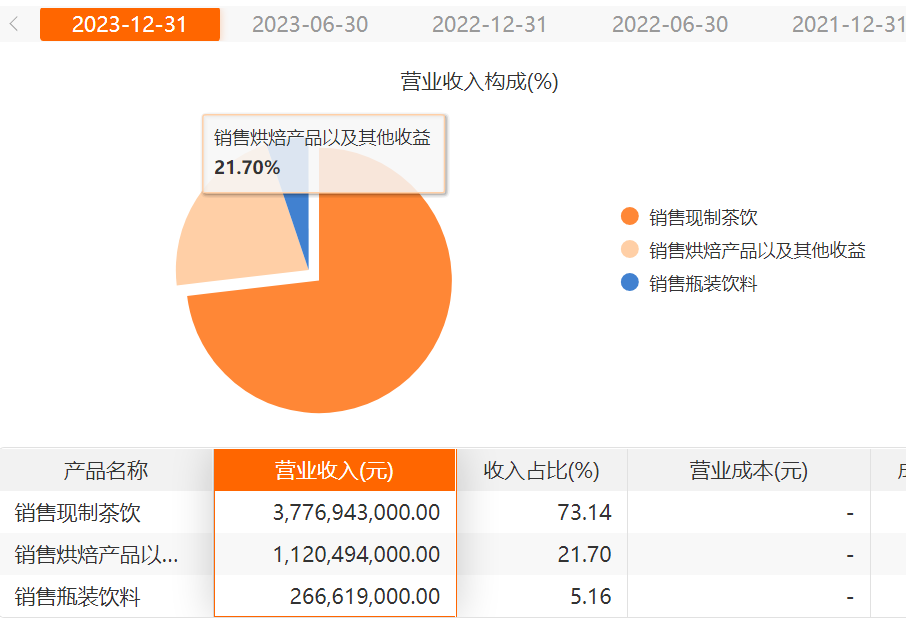 奈雪的茶不同產(chǎn)品的收入狀況,圖源/Choice