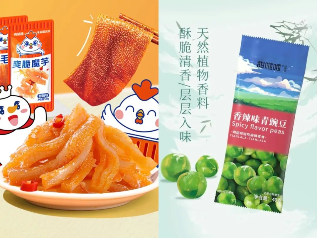左:蜜雪冰城爽脆魔芋;右:甜啦啦香辣青豌豆 圖源:蜜雪冰城天貓旗艦店;甜啦啦微信公眾號
