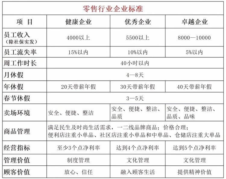健康企業(yè)的標準在總裁班里也寫出來了。4,000以上的是健康的企業(yè);達到5,500以上或6,000以上的,在行業(yè)當中是非常優(yōu)秀的企業(yè),天花板的企業(yè)。像ALDI、Costco、山姆會員店這樣品質的企業(yè),將來中國必須有一批至少三五家這樣優(yōu)秀的企業(yè),支撐我們社會的一種方向!