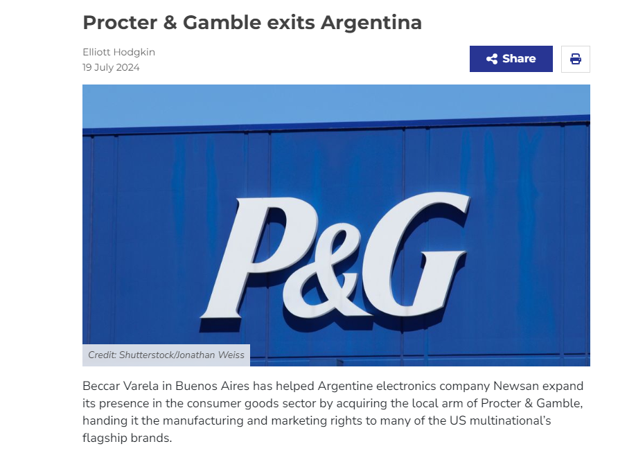 也就是說,在退出尼日利亞之后,如今寶潔已正式開始履行計劃中的另一部分,即正式退出阿根廷市場。