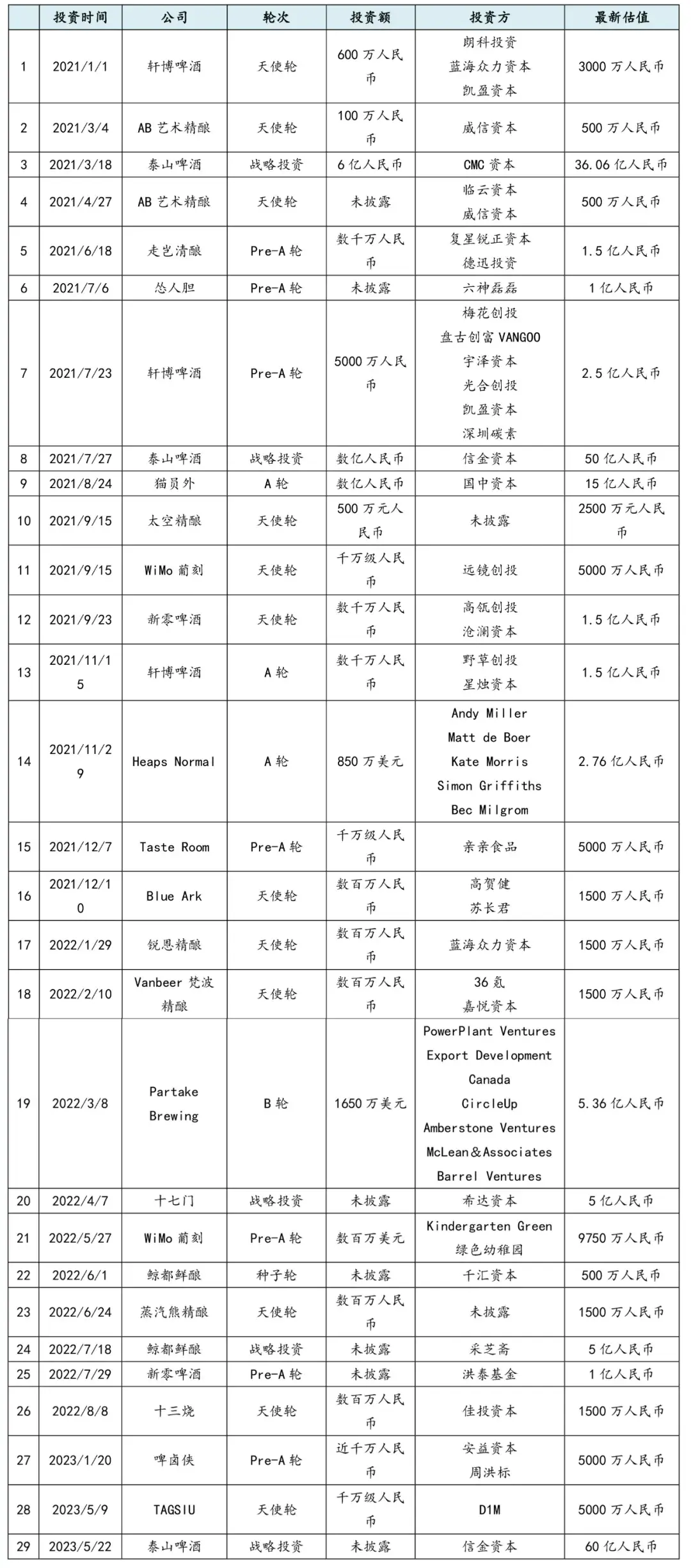 據(jù)“趣解商業(yè)”不完全統(tǒng)計(jì),被稱為“精釀啤酒元年”的2021年,我國(guó)精釀啤酒品牌融資超過(guò)10億元,碧山村、泰山原漿、新零啤酒等15家精釀啤酒品牌陸續(xù)獲得融資,且有16個(gè)投資機(jī)構(gòu)對(duì)精釀啤酒賽道進(jìn)行過(guò)2次及以上的投資;此外,IDG資本、高瓴創(chuàng)投、梅花創(chuàng)投、天圖資本等知名機(jī)構(gòu)以及眾多未披露的投資機(jī)構(gòu)和個(gè)人也涉足精釀?lì)I(lǐng)域。到了2023年,精釀投資更加傾斜于中西部省份及三、四線城市,行業(yè)下沉趨勢(shì)明顯。
