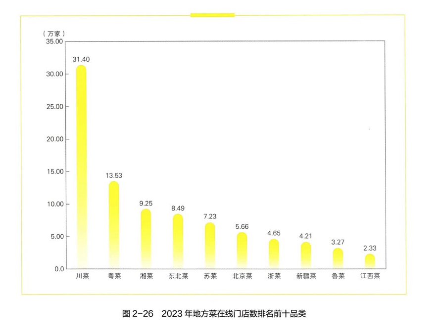 根據(jù)美團(tuán)2024年中國餐飲年度觀察和大數(shù)據(jù)顯示,2023年地方菜系在線門店數(shù)量排名中,浙菜位列第七,落后于川菜、粵菜、湘菜、東北菜、蘇菜和北京菜。從訂單量來看,浙菜訂單量占比4.1%,排名第六。