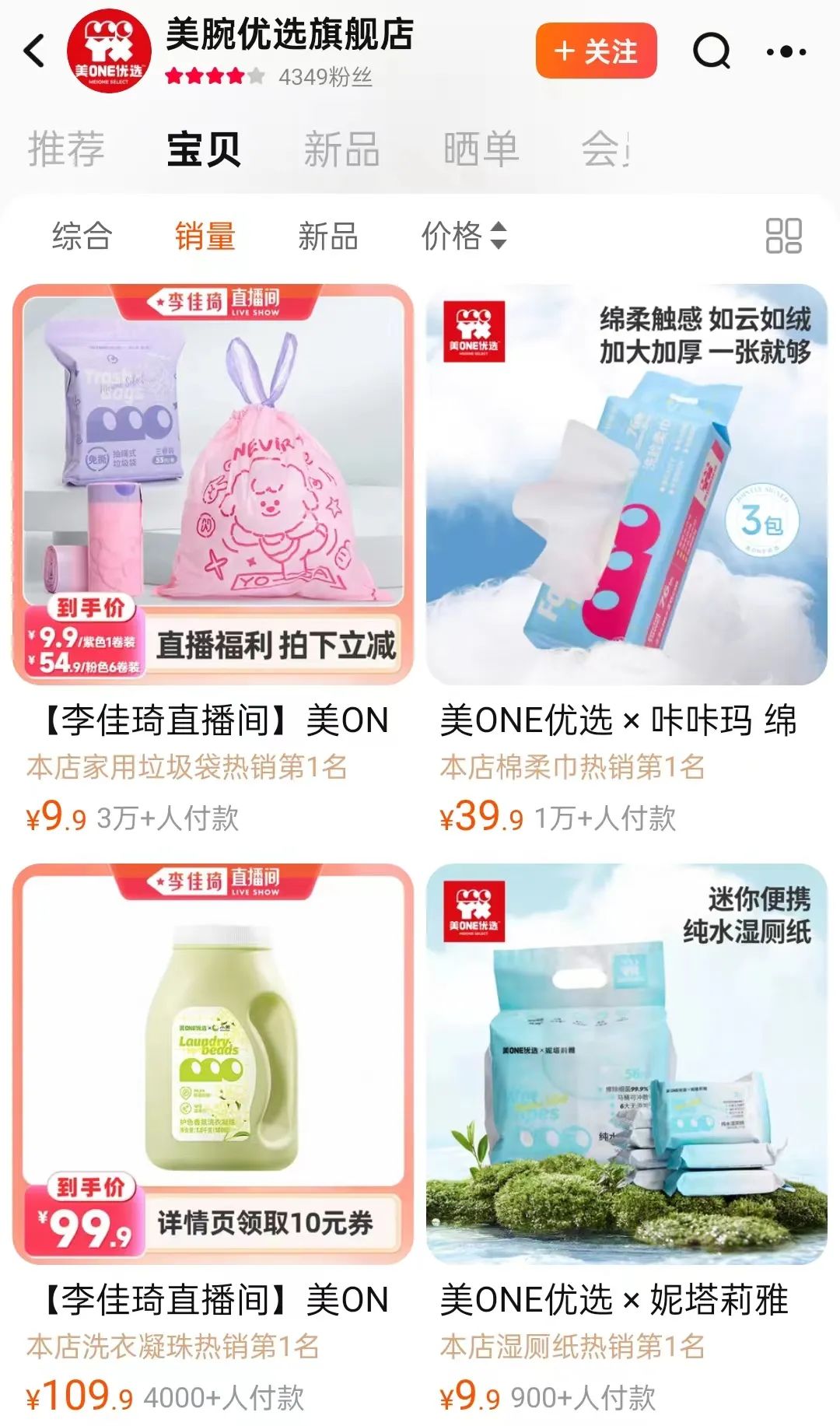 截至目前,該店鋪的累計(jì)銷量已經(jīng)超過(guò)3300萬(wàn)單。其中一款定價(jià)僅為9.9元的垃圾袋更是直接賣出1500多萬(wàn)單。