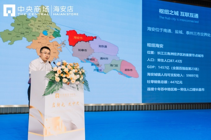 中央商場集團(tuán)總裁助理秦文泉先生上臺致辭,對海安中央商場項目給予了充分肯定,闡述了中央商場集團(tuán)的雄厚實力。中央商場集團(tuán)深耕江蘇、輻射全國,始終秉承著行業(yè)一流連鎖品牌,做基業(yè)長青百年“中央”的戰(zhàn)略發(fā)展目標(biāo),持續(xù)完善升級,求變創(chuàng)新,以繁榮城市商業(yè)為第一要務(wù),提升城市商業(yè)新勢能,將美好生活帶到消費者身邊。不負(fù)城市期待,與美好的海安共成長。