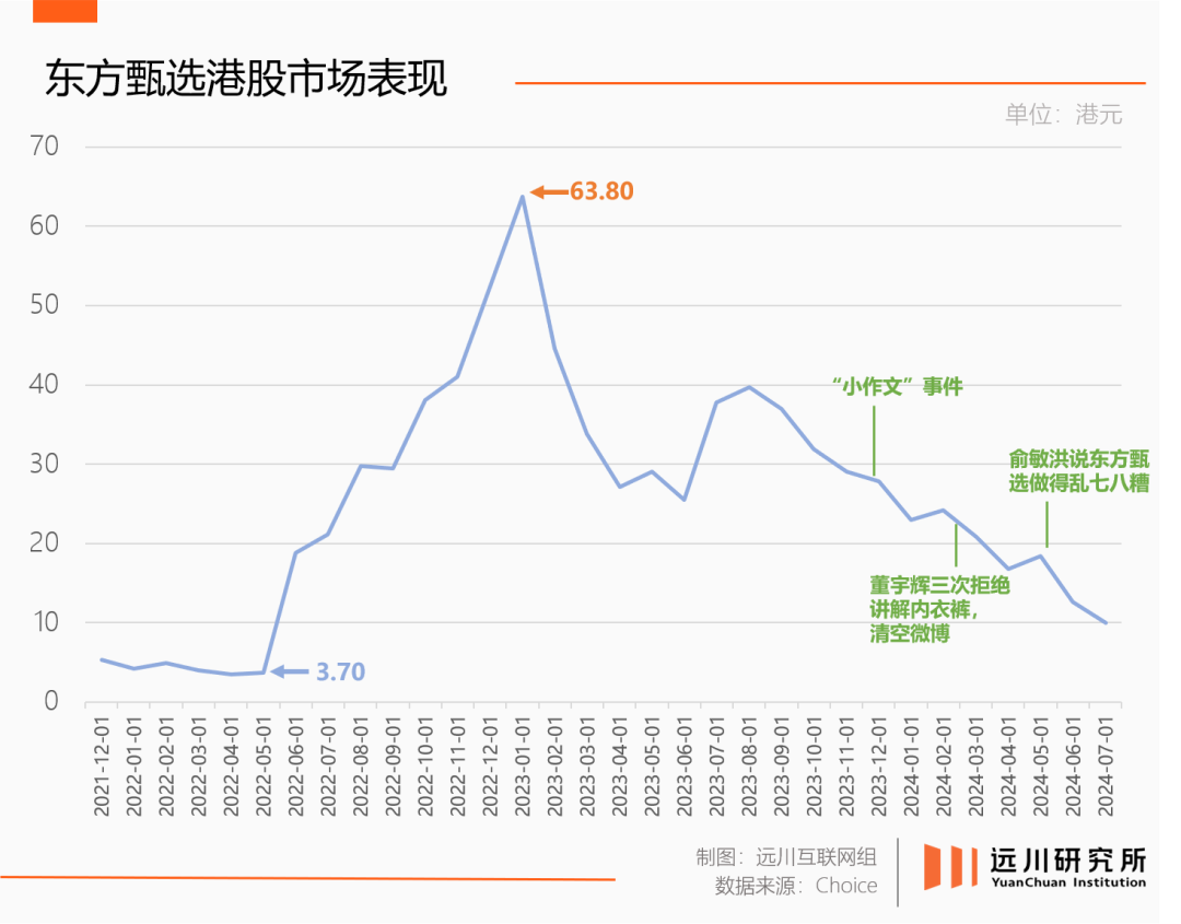 今年6月,董宇輝一句“非常抗拒賣(mài)東西”讓東方甄選股價(jià)跌了10個(gè)點(diǎn);半年多時(shí)間里,圍繞董宇輝的三次輿論危機(jī),直接干掉了東方甄選一半市值。
