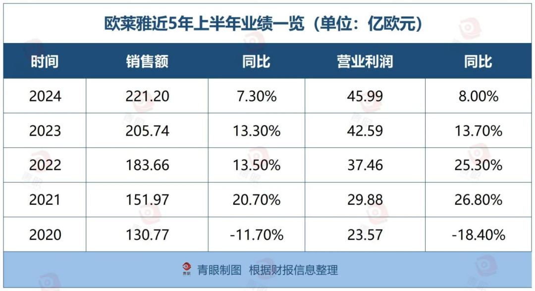同期,其營業(yè)利潤也不斷增加,維持著顯著增長。但相較于過去三年的雙位數(shù)增長,歐萊雅集團今年上半年增速存在明顯放緩趨勢,并首次銷售額和營業(yè)利潤均回落至個位數(shù)增長。