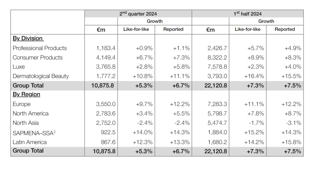 據(jù)財報顯示,2024年上半年,歐萊雅集團不管是銷售額還是營業(yè)利潤均獲得了增長,其中第二季度銷售額為108.76億歐元(約合852.95億元),同比增長5.3%。