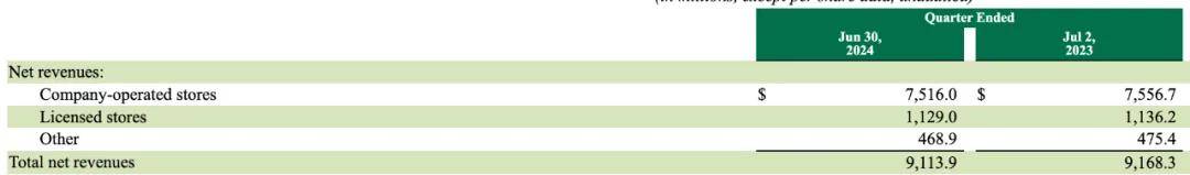 2024財(cái)年第三季度星巴克營(yíng)收情況,圖源/星巴克財(cái)報(bào)
