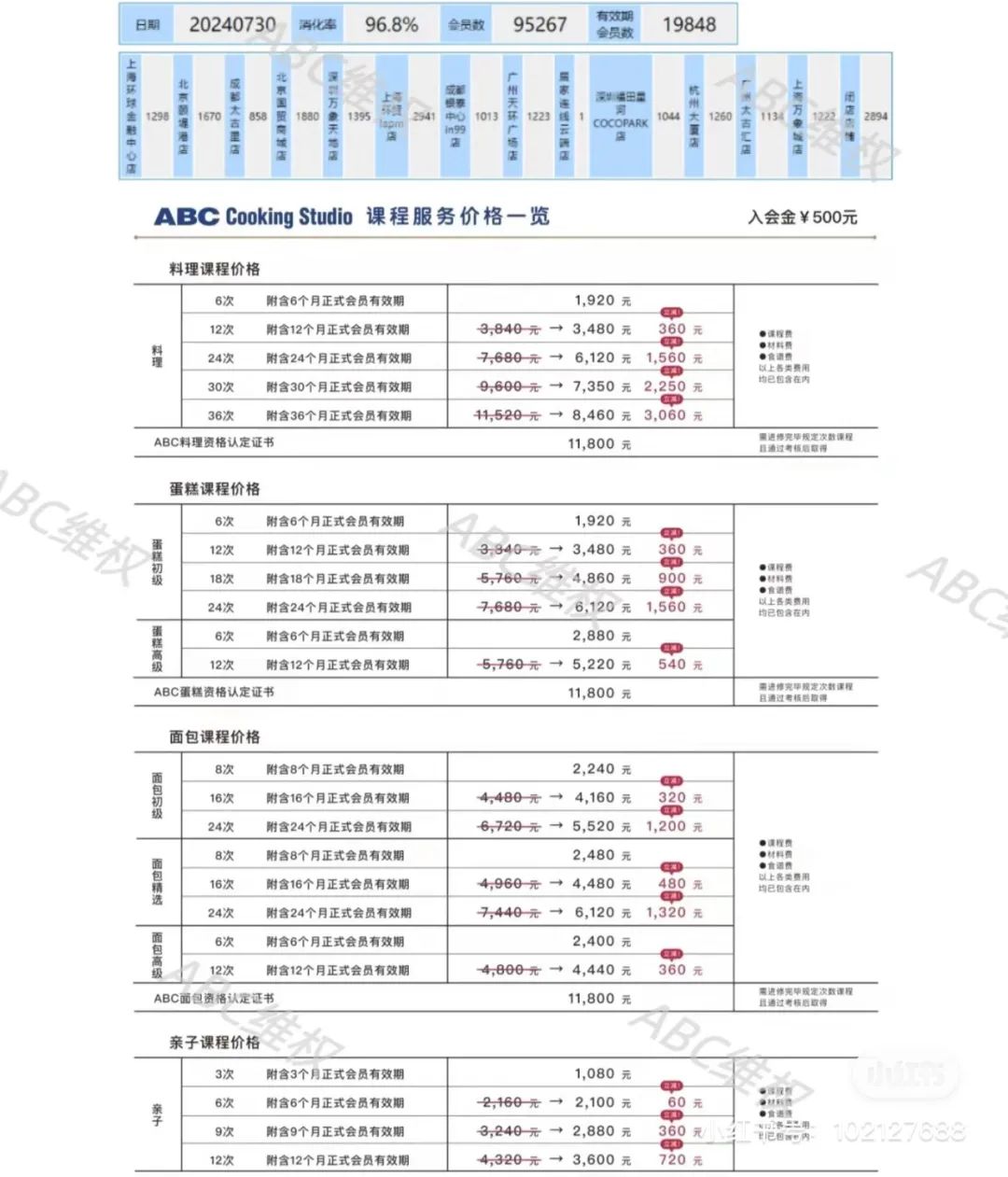 另外一種是白金會員會籍,即花錢培訓單種烘焙證書考核資格,通過考試獲得。而ABC蛋糕資格認定證書的白金會員會籍在1.18萬元。