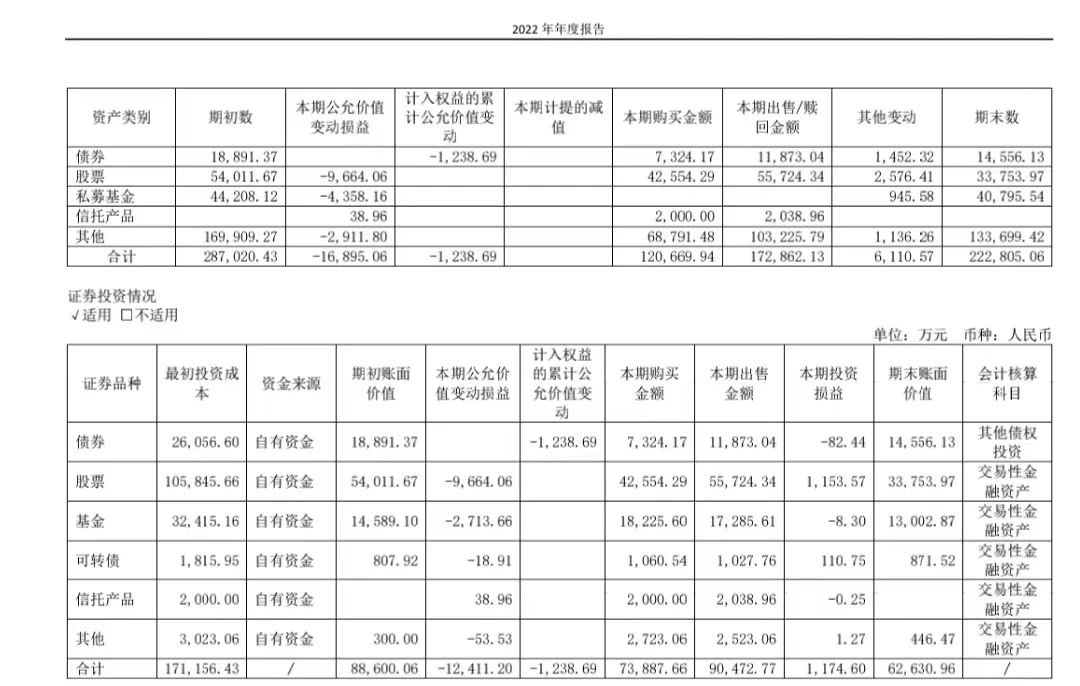 但自2020年開始,九牧王的投資收益開始逐漸下滑,并導致虧損。九牧王的投資收益卻從2019年開始便出現(xiàn)下降趨勢,2020年損失了5860萬元,2021年損失了8133萬元,2022年九牧王的股票及基金一共虧了1.24億元。九牧王在投資上的虧損,直接導致了2022年這一上市以來的首虧,凈虧損9342萬元,被調侃說“賣男裝賺1億,炒股虧1億”。