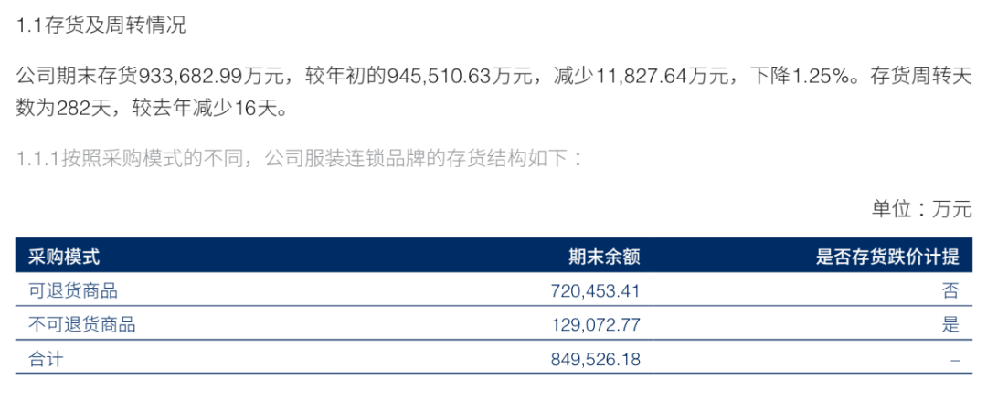 不僅僅是九牧王,在海瀾之家的2023年財報中,截至2023年末,海瀾之家存貨價值為93.37億元,存貨周轉天數(shù)為282天,雖然對比2022年均有所下降,但對比2019年90.44億元的存貨價值和250天的存貨周轉天數(shù),還是分別增長了3.24%和12.8%。高昂的存貨和周轉率,足以表明海瀾之家仍未走出“失速”陰霾。