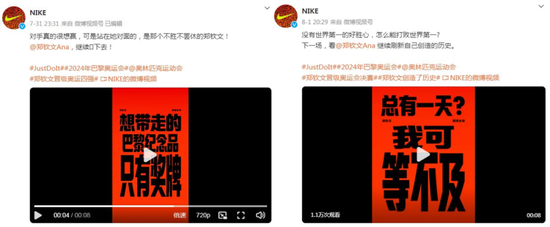 舉個(gè)例子,耐克今年的奧運(yùn)海報(bào)讓人感受到“久違的熱血”“奧運(yùn)應(yīng)有的競(jìng)技精神”,別的不說(shuō),鄭欽文一句“想帶走的巴黎紀(jì)念品只有獎(jiǎng)牌”便令人動(dòng)容。