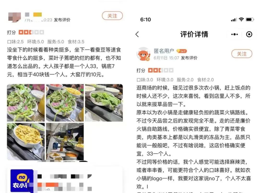 翻看大眾點(diǎn)評(píng),也有農(nóng)小鍋的顧客配圖并評(píng)論:“食材不新鮮、菜葉子蔫吧”;也有顧客表示:“沒(méi)有任何服務(wù)、麻醬也不好吃!