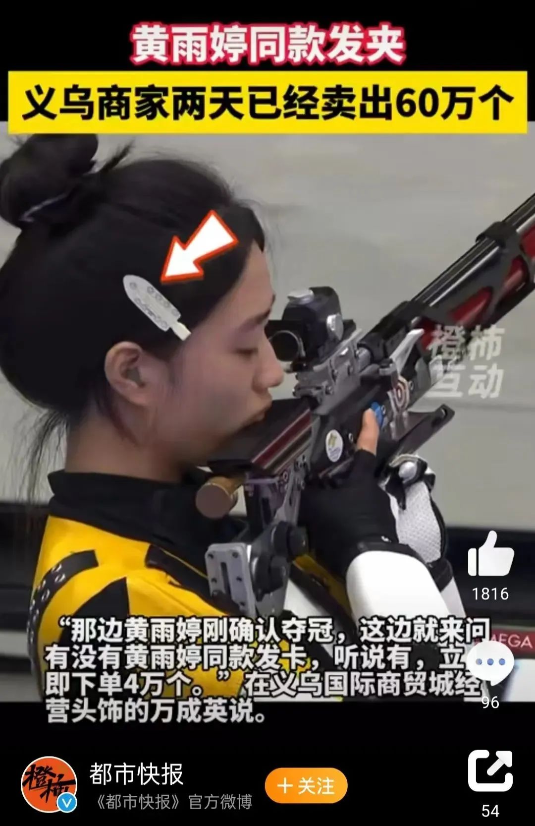 在賽場(chǎng)上,黃雨婷與搭檔盛李豪拿下了巴黎奧運(yùn)首金,收獲了一大波關(guān)注。與此同時(shí),黃雨婷也意外地帶動(dòng)了她頭上發(fā)卡的熱銷。