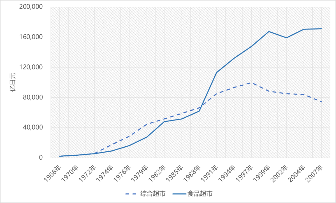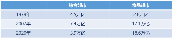 日本綜合超市與食品超市的市場(chǎng)規(guī)模比較