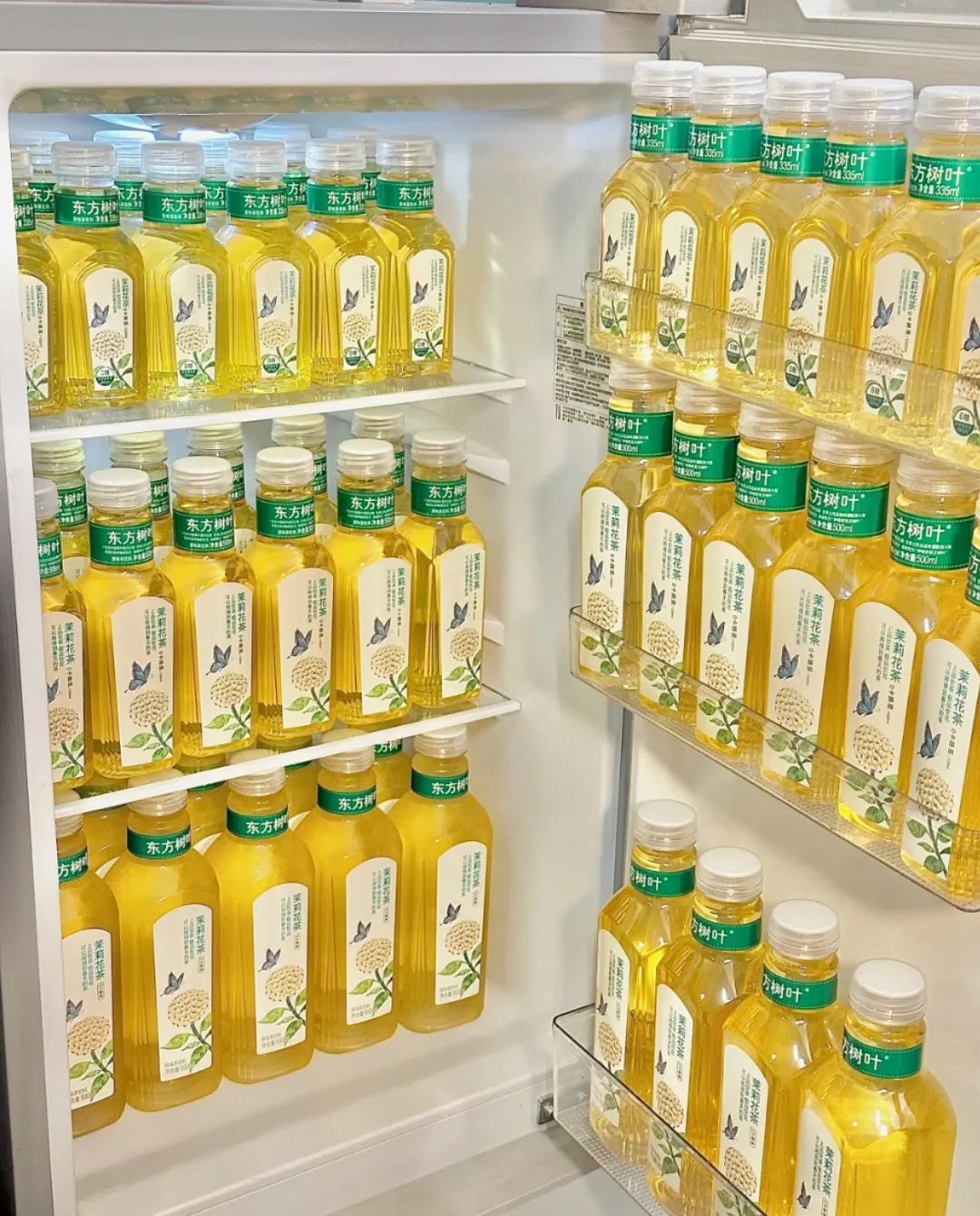 2023年,年輕人對大包裝飲料關(guān)注度越來越高。東方樹葉于當年年初在天貓旗艦店上線了900ml的大瓶裝。到今年,東方樹葉900ml大瓶裝已經(jīng)在線下渠道鋪開,甚至占據(jù)了貨架C位。