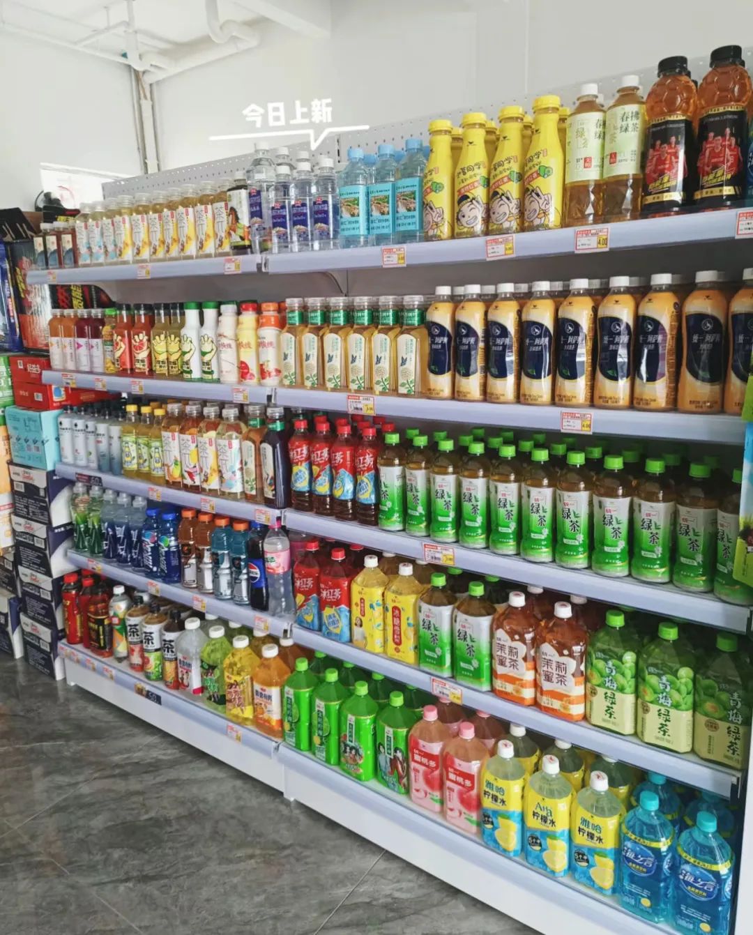 湖北某五線超市第三排貨架擺上了茶π和東方樹葉大瓶裝