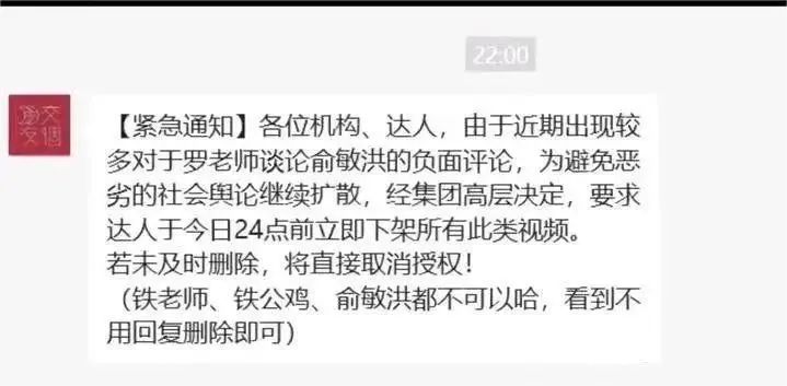 近日就有消息稱(chēng),“交個(gè)朋友”向授權(quán)切片賬號(hào)發(fā)出緊急通知,稱(chēng)由于近期出現(xiàn)較多對(duì)于羅老師談?wù)撚崦艉榈呢?fù)面評(píng)論,為避免惡劣的社會(huì)輿論繼續(xù)擴(kuò)散,經(jīng)集團(tuán)高層決定,要求達(dá)人立即下架所有此類(lèi)視頻。若未及時(shí)刪除,將直接取消授權(quán)。