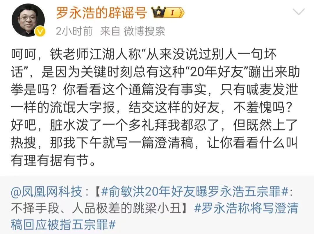 俞敏洪20年好友曝羅永浩“五宗罪”