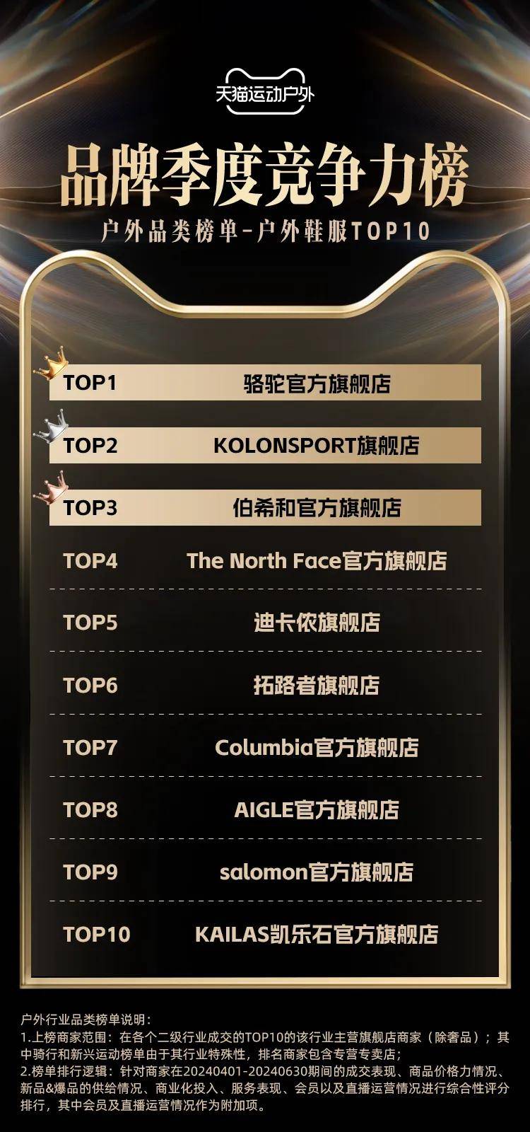 天貓運(yùn)動(dòng)戶外行業(yè)Q2季度品牌競(jìng)爭(zhēng)榜總榜
