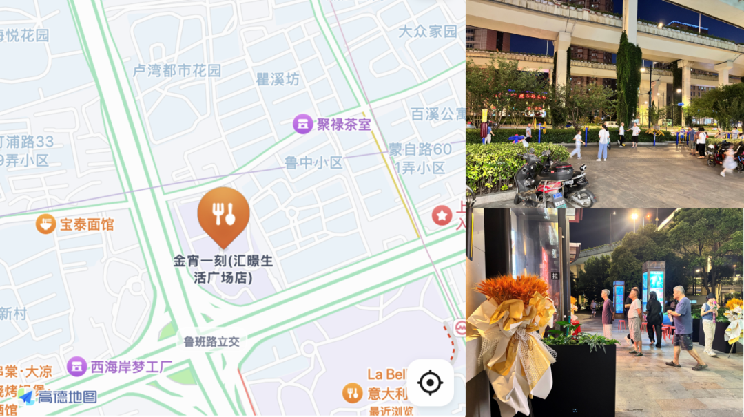 金宵一刻所在的匯暻生活廣場(chǎng),近魯班路地鐵站,位于上海市中心區(qū)域,周邊擁有多個(gè)大型社區(qū)。今宵一刻外擺區(qū)域旁就是一個(gè)小的健身區(qū)域,周邊不斷有附近居民散步和運(yùn)動(dòng)。
