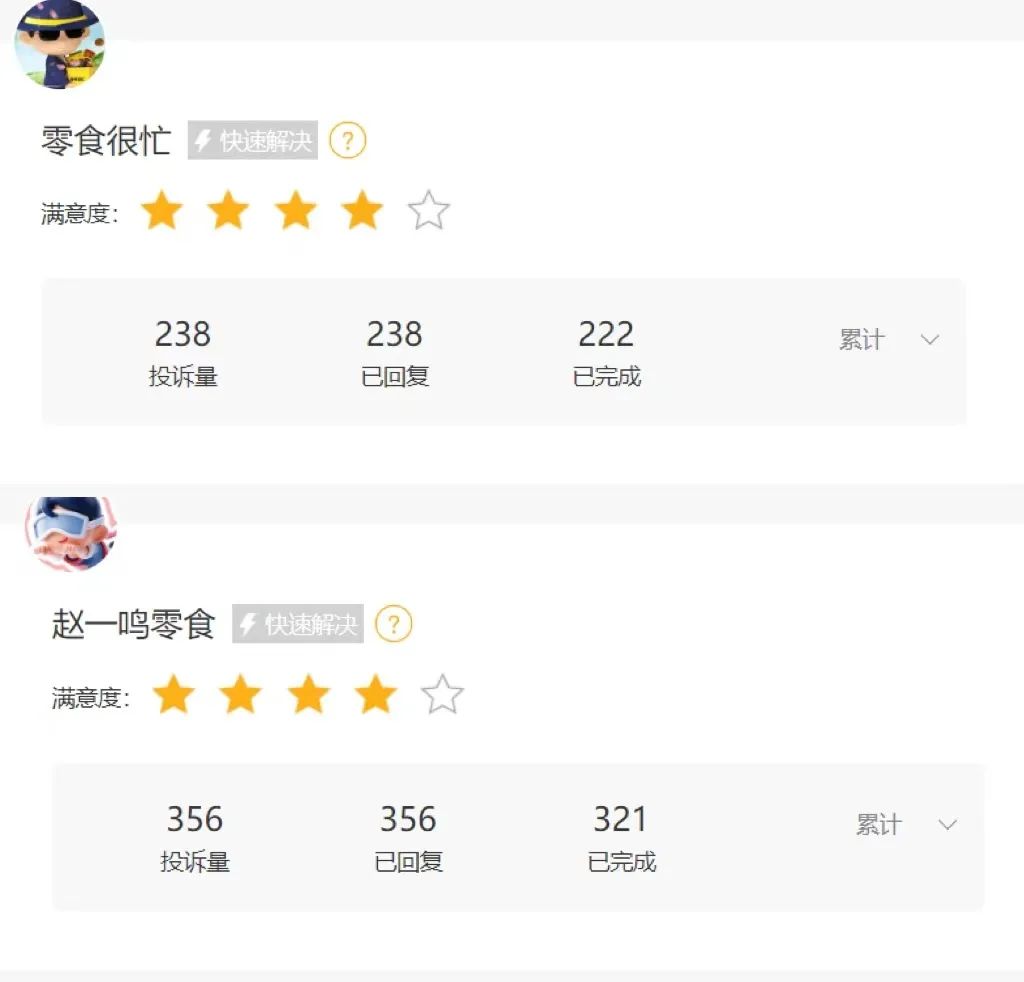 白牌產(chǎn)品是零食量販店的核心利潤來源,也是他們的翻車的主要原因,尤其是食品安全問題。黑貓投訴平臺(tái)上就有不少消費(fèi)者表示零食很忙產(chǎn)品質(zhì)量有問題,零食很忙自己的顧客投訴統(tǒng)計(jì)中也有體現(xiàn)。