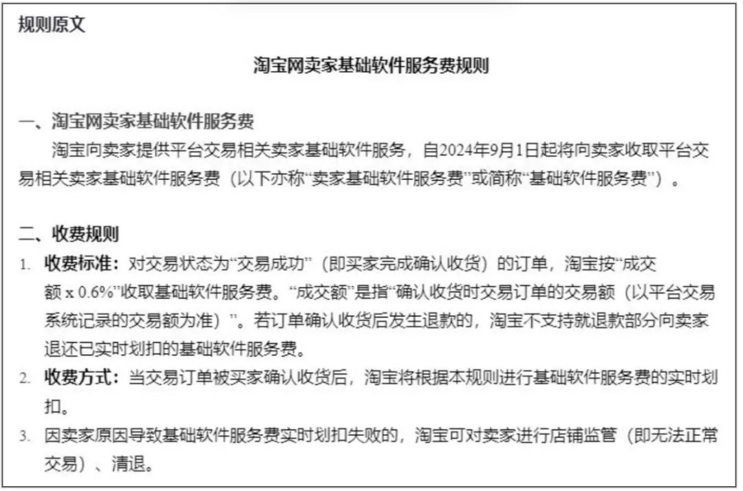 于是阿里這次在減輕商家負擔的同時,還出臺了向商家收取“基礎(chǔ)軟件服務費”的新規(guī)。
