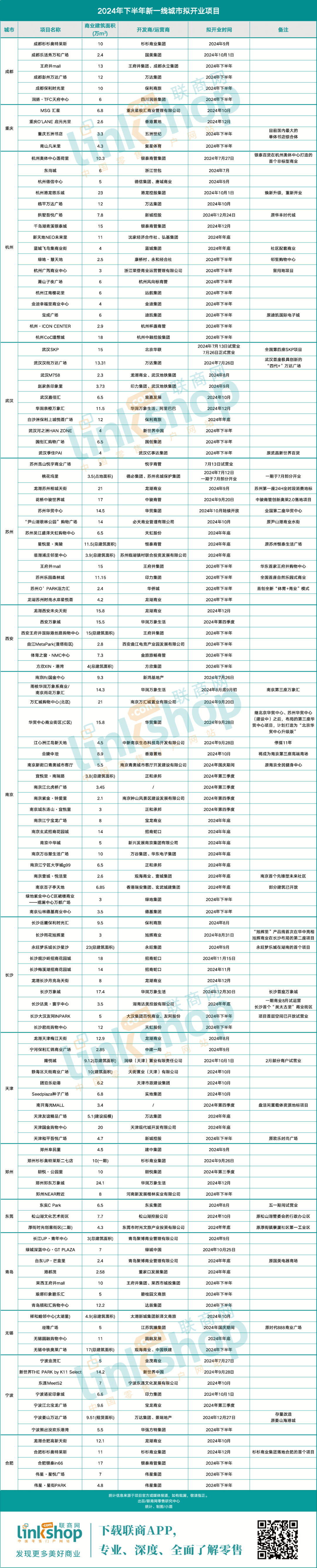 附:2024年下半年新一線城市擬開業(yè)項(xiàng)目一覽