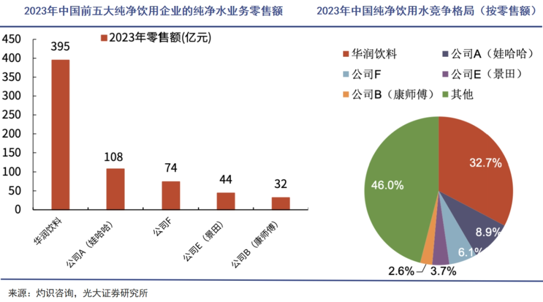 不過(guò),消費(fèi)者始終對(duì)天然水有所偏愛(ài),農(nóng)夫山泉也在次年重奪全行業(yè)榜首的位置。至今,兩家仍分居行業(yè)第一和第二,合計(jì)占有超過(guò)了四成的市場(chǎng)。
