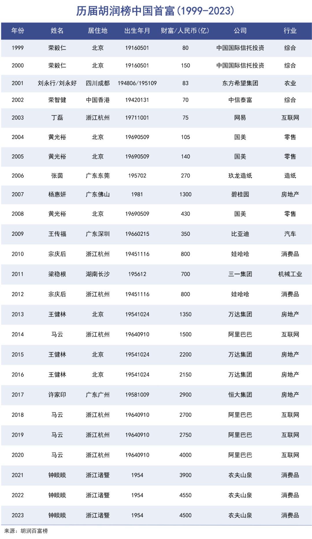 全球范圍看,液體飲料都可以稱(chēng)得上是“富豪制造機(jī)“。尤其是中國(guó)瓶裝水市場(chǎng)先后成就了宗慶后、鐘睒睒兩位首富級(jí)企業(yè)家。自2020年農(nóng)夫山泉上市后,鐘睒睒連續(xù)三年蟬聯(lián)了首富之位。