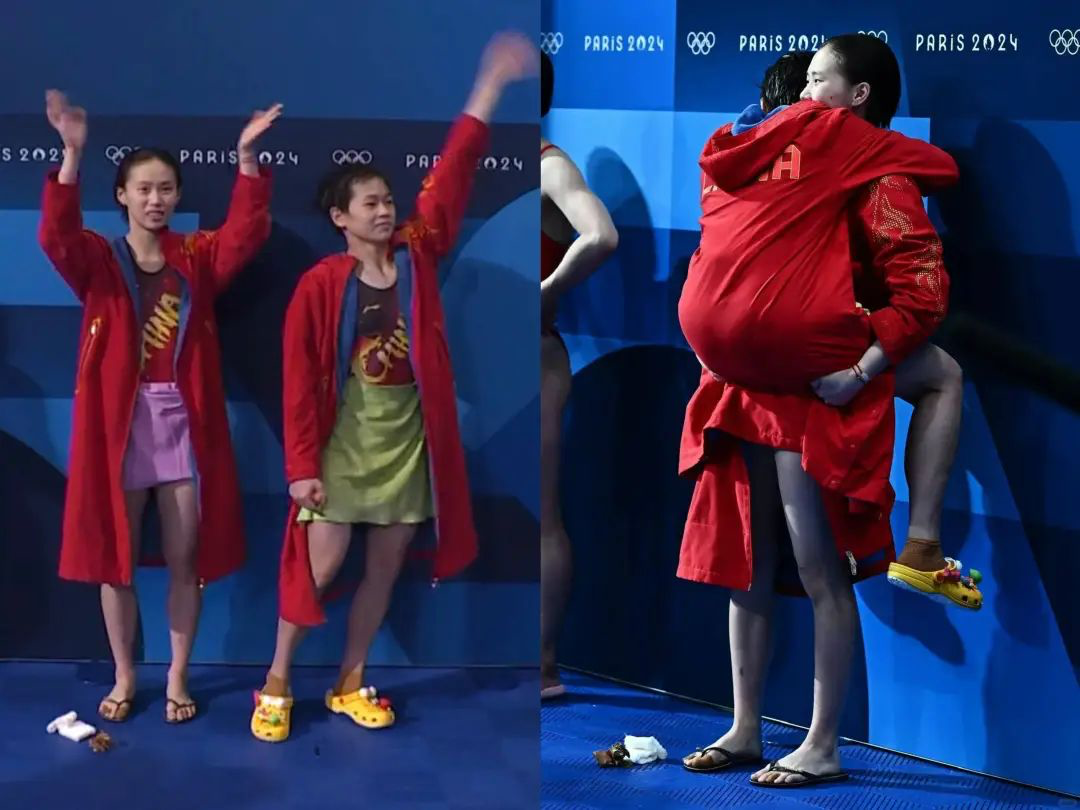 跳水比賽后,冠軍組合陳芋汐和全紅嬋的擁抱暖心至極,全紅嬋腳上亮眼的洞洞鞋立刻火爆全網(wǎng)。