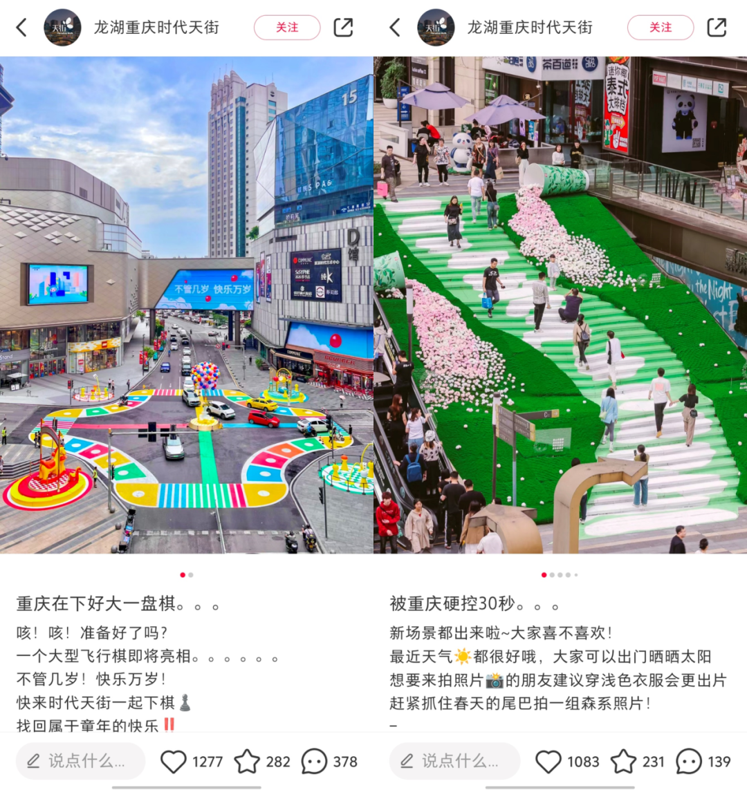 很顯而易見的改變,是幾乎所有的商場都想做小紅書,但和過去“訂閱制”模式下,每個商場官微都10萬粉絲起步不同,“推送制”的新社交平臺,好的官方賬號寥寥無幾。