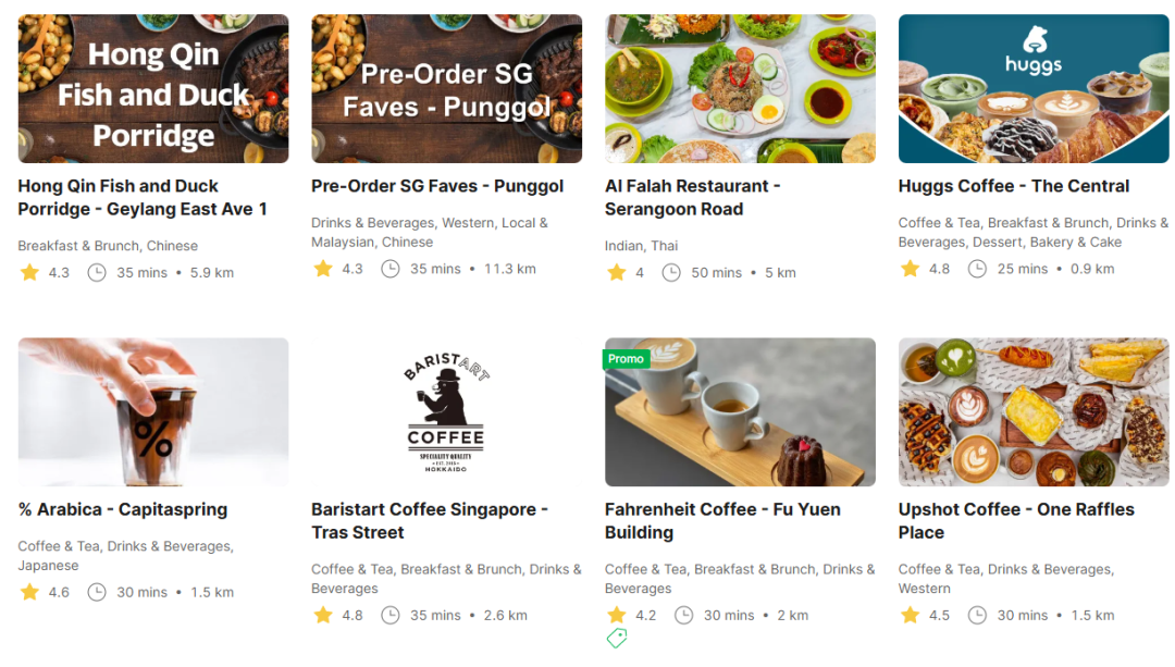 其三,新加坡餐飲行業(yè)競(jìng)爭(zhēng)慘烈,以咖啡行業(yè)為例,雖然新加坡經(jīng)濟(jì)發(fā)達(dá)、企業(yè)加班文化普遍、咖啡業(yè)成熟,但當(dāng)?shù)乜Х葮I(yè)競(jìng)爭(zhēng)慘烈。在Garb平臺(tái)上,除瑞幸、星巴克外,還有Huggs Coffee、Baristart Coffee Singapore、Fahrenheit Coffee、Upshot Coffee等幾十家咖啡品牌,涵蓋新加坡本土、全球大型國(guó)際連鎖、精品咖啡店等。