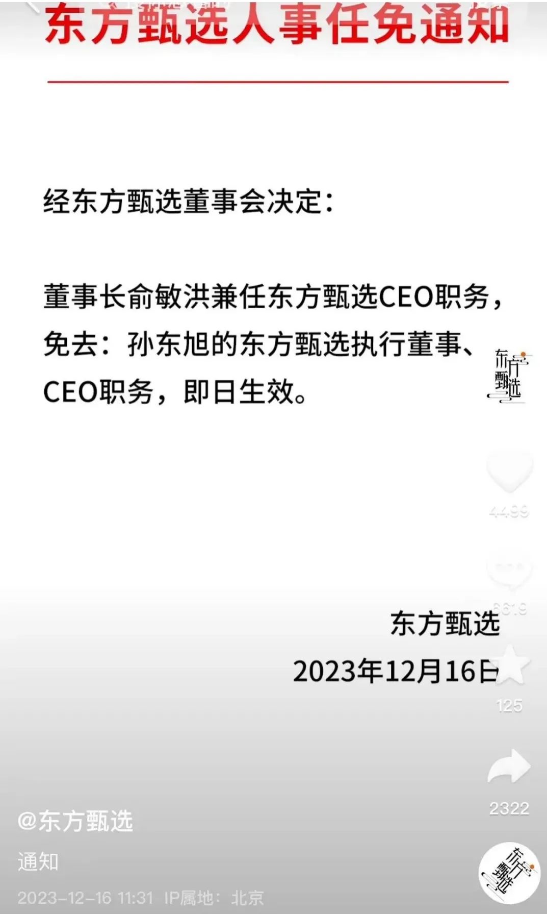 那次事件直接引發(fā)了連鎖反應(yīng),導(dǎo)致孫東旭的行政總裁與執(zhí)行董事職務(wù)被解除,不僅令其個(gè)人職業(yè)生涯遭受重創(chuàng),也在無(wú)形中悄然影響了董宇輝與孫東旭之間的關(guān)系。